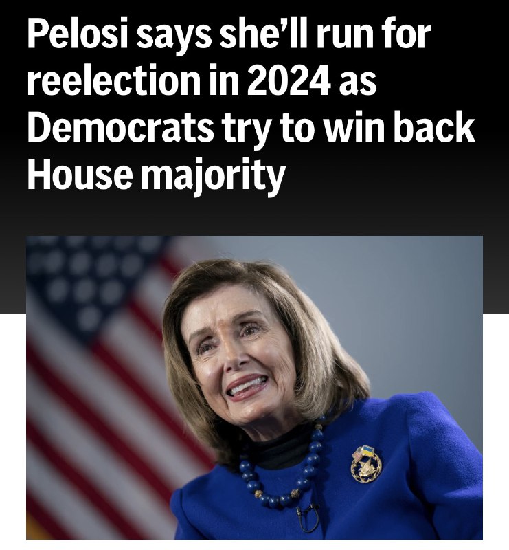 83 year old drunken maniac Nancy Pelosi announces she is running for another term in Congress.