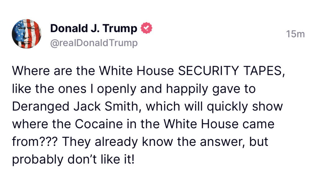 Trump also asked if anyone really believes the coke belongs to anyone other than Joe and Hunter Biden, and asserted that the Secret Service already know where it came from.