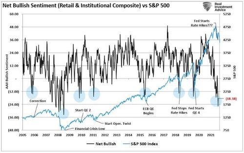 When levels of negativity reach very low levels, such historically equates to short- to intermediate-term market bottoms. Such is because excesses get built with everyone on the same side of the trade. At that time, everyone was so bearish it was a bullish measure. As we stated then, “the reflexive trade will be rapid when the shift in sentiment occurs.”