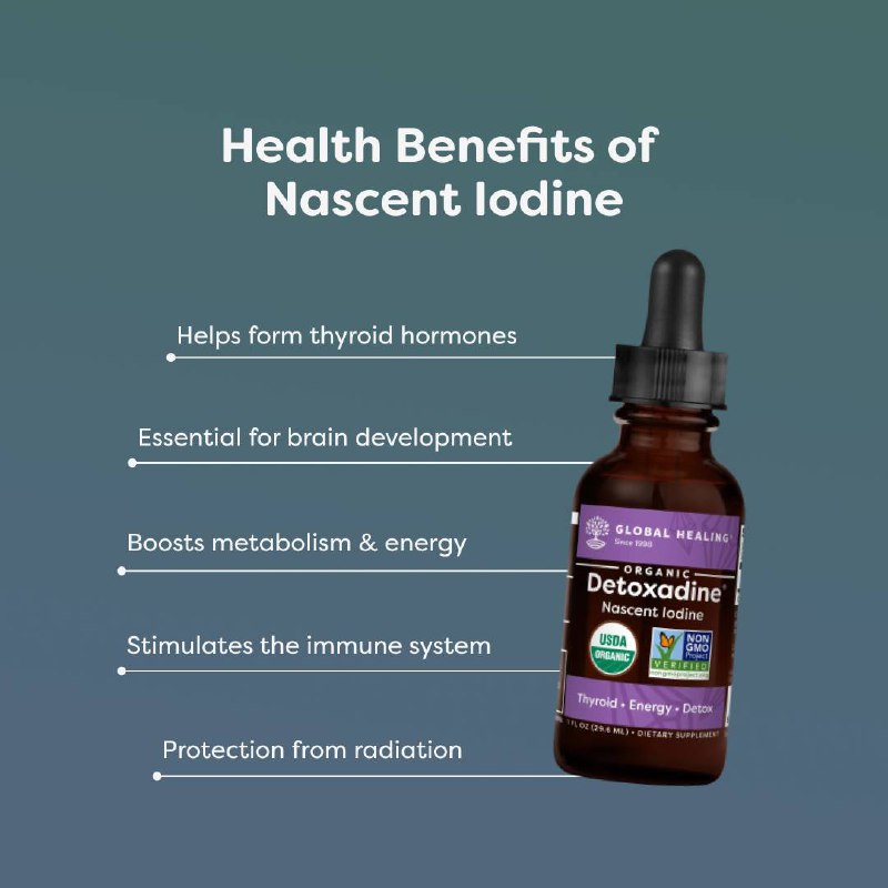 Detoxadine is certified organic nascent iodine. Created from salt deposits located more than 7,000 feet below the earth’s surface, Detoxadine is pure and concentrated. Every drop provides 650 micrograms of iodine in a glycerin base. https://bit.ly/Detoxadine3