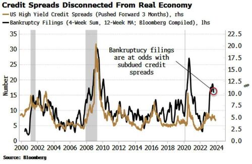 Subdued credit spreads fail to reflect the rising incidence of corporate distress.