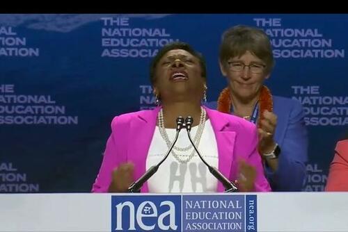 It recently held its annual conference, an event at which “approximately 6,000 educators meet to debate the vital issues that impact American public education and set National Education Association policy and activities for the year ahead.” At this year’s meeting, Becky Pringle, the NEA’s president, stood up to speak.