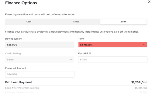 Financing options for Tesla Model S Plaid