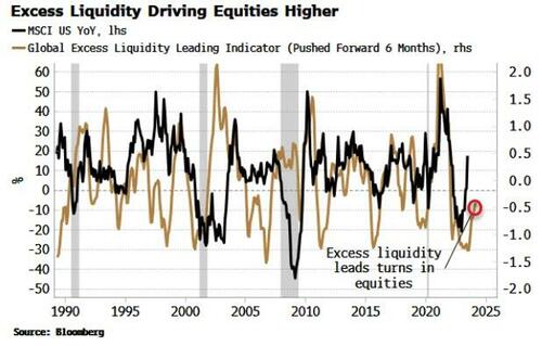 As the Federal Reserve removed monetary accommodation, liquidity conditions have nominally tightened. Yet excess liquidity – the difference between real money growth and economic growth – has been notably rising since March, providing equities with the strong tailwind they have enjoyed for most of this year.