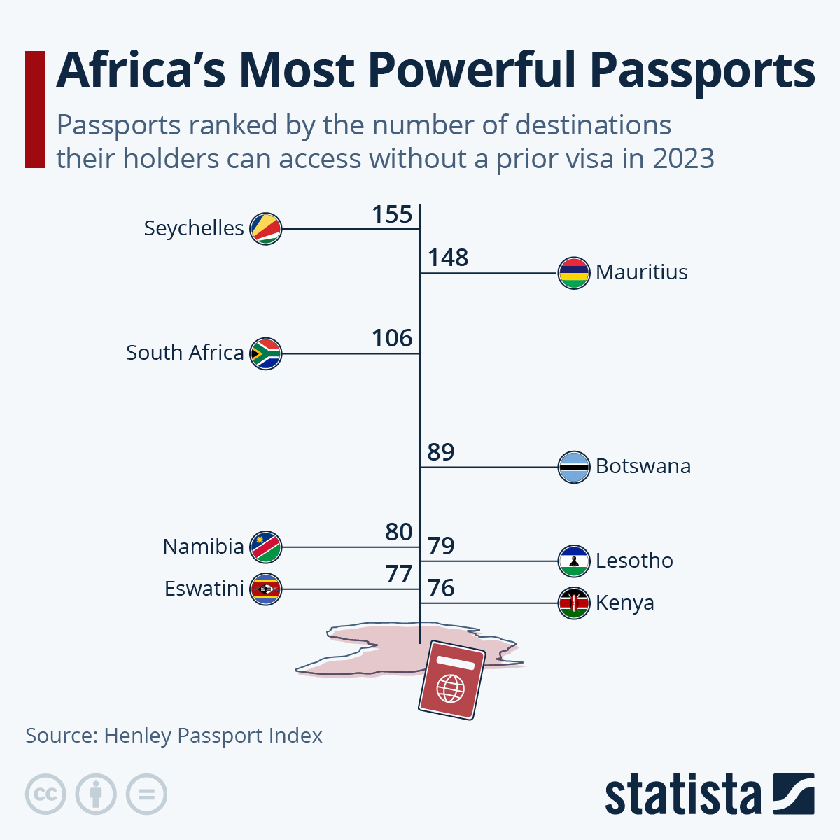 Seychelles has the most powerful passport in Africa, followed by Mauritius and South Africa.