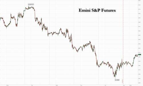 US equity futures and global stocks are solidly higher to start the new week after a bruising August so far for investors, whose attention now turns to the week’s Jackson Hole symposium (which last year set off a powerful selloff that sent stocks into a painful bear market). Risk is on despite global bonds broadly weaker, with 10Y TSYs rates rising above the 4.25% level that had acted as strong near-term support. As of 7:45am ET, emini S&P futures were 0.5% higher at 4,405, well above Friday’s multi-month lows of 4,350, while Nasdaq futures rose 0.6%. Europe is also solidly in the green, with major markets such as Italy/France/SX5E up more than 1%. Asian stocks were little changed, steadying after six-straight daily losses, even as stocks slumped in Hong Kong and mainland China after Chinese banks made a smaller-than-expected cut to the one-year prime lending rate, confusing markets and traders after last week’s unexpected rate cut.