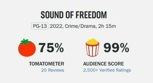 Back to reality, the Sound of Freedom currently enjoys a 99% user rating on Rotten Tomatoes, and 75% from ‘Hollywood type’ professional reviewers (if ya know what we mean).